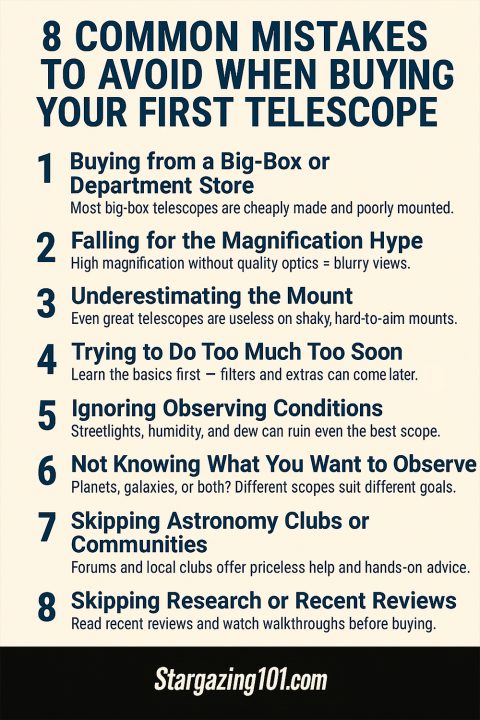 Starting out in astronomy is thrilling, but it’s also easy to make beginner mistakes that lead to frustration, wasted money, or giving up on the hobby entirely.
